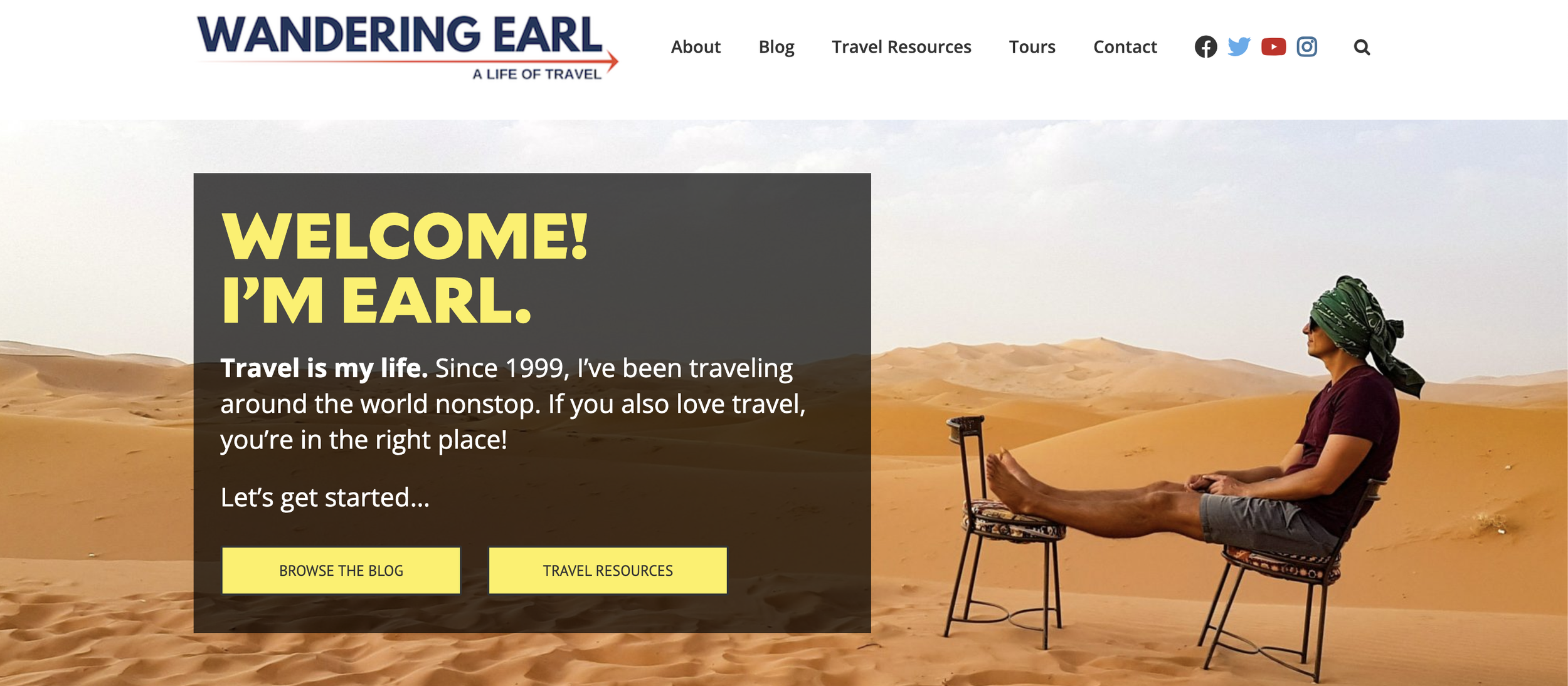 I love how Wandering Earl, aka Derek Earl Baron, has been on a perpetual vacation since packing a backpack in 1999. Living unconventionally out of a suitcase, having explored 100+ countries, his quirkiness mirrors his deep passion for travel.